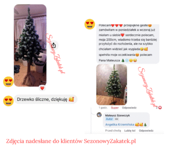 💚 Dodatkowo zamieściliśmy również zdjęcia oraz opinie przesłane przez naszych zadowolonych klientów, które potwierdzają wysoką jakość i piękny wygląd naszych choinek.